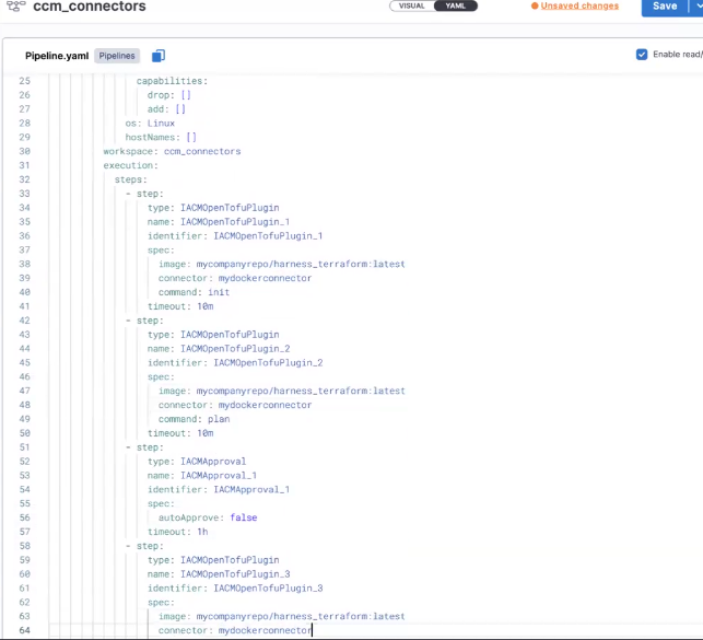 To accomplish this, we will store our Terraform code in Code Repository. We'll then use this repo in the IaCM module to apply the connectors.