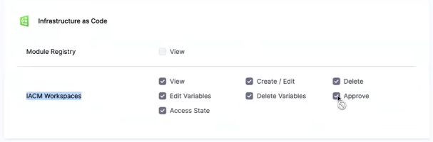 permission in the Infrastructure as Code section and create a custom role.